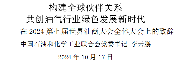 石化聯(lián)合會黨委書記李云鵬:構(gòu)建全球伙伴關(guān)系 共創(chuàng)油氣行業(yè)綠色發(fā)展新時代