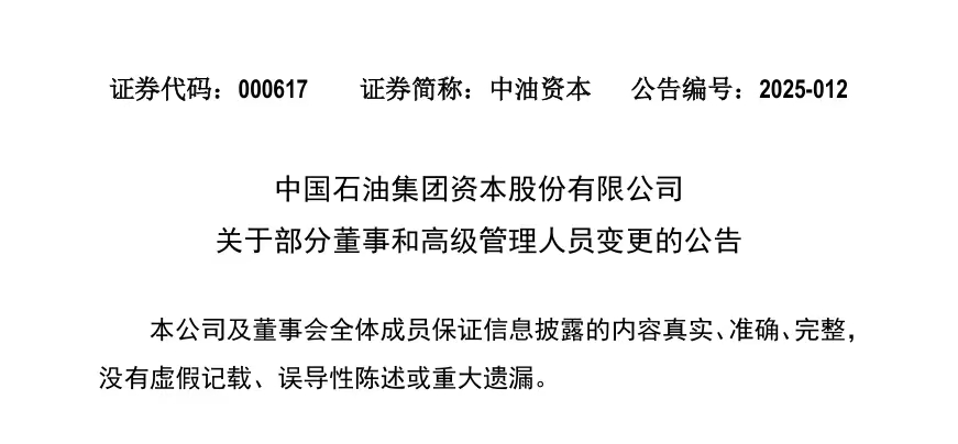 近日,中油資本領導班子有調(diào)整,四位高管同日辭職。