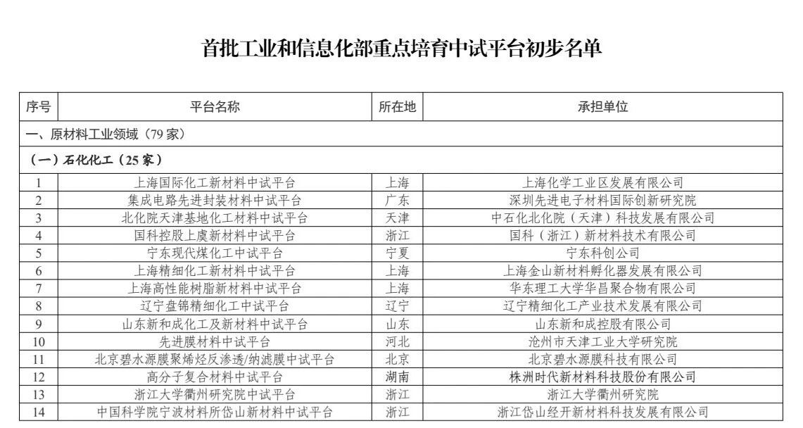 工信部發(fā)布首批工業(yè)和信息化部重點(diǎn)培育中試平臺(tái)初步名單