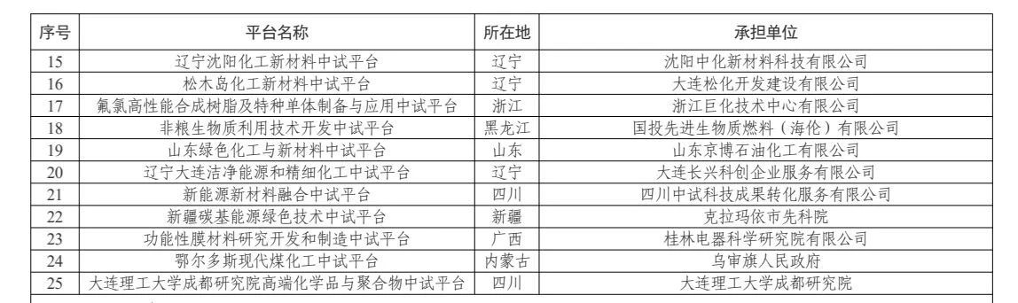 5月8日,工業(yè)和信息化部科技司發(fā)布首批工業(yè)和信息化部重點(diǎn)培育中試平臺(tái)初步名單公示,242個(gè)平臺(tái)入選。公示期為2025年5月8日—5月14日。其中,涵蓋石化化工平臺(tái)共25家,具體分布情況上海3家,浙江4家,遼寧4家,山東2家等。