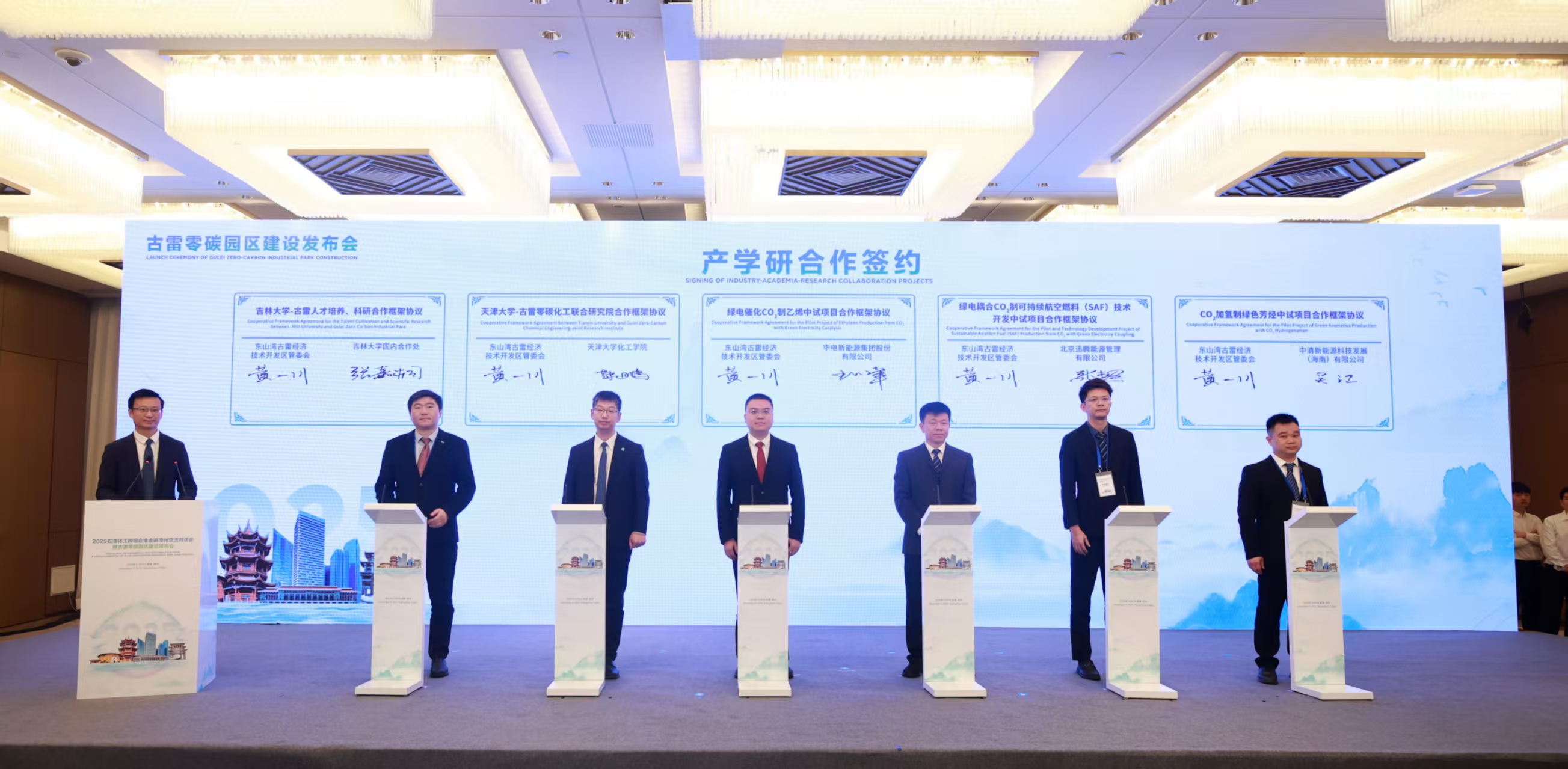 在本次活動中,古雷開發(fā)區(qū)還和多家企業(yè)簽訂了CO2加氫制綠色芳烴、綠電耦合CO2制可持續(xù)航空燃料(SAF)技術(shù)開發(fā)、綠電催化CO2制乙烯等一批前沿科創(chuàng)項目,并與吉林大學、天津大學簽訂框架協(xié)議,深化人才培養(yǎng)、科研合作,聚合產(chǎn)研資源要素,助力零碳園區(qū)建設(shè),推動古雷綠色轉(zhuǎn)型升級從能源替代的產(chǎn)業(yè)布局,走向科技創(chuàng)新深水區(qū)。