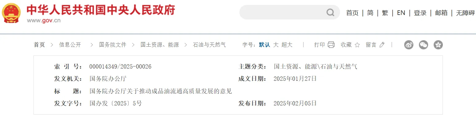 國務院辦公廳印發(fā)《關于推動成品油流通高質(zhì)量發(fā)展的意見》