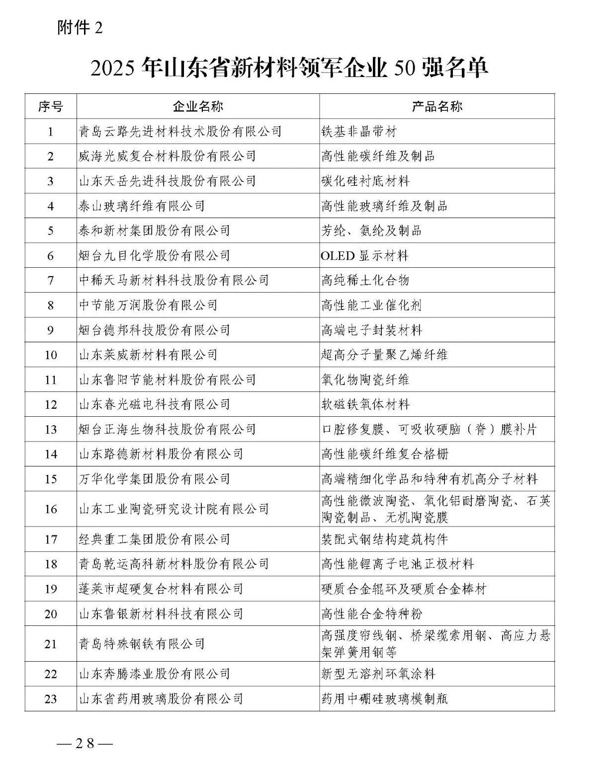 附件:2.2025年山東省新材料領軍企業(yè)50強名單