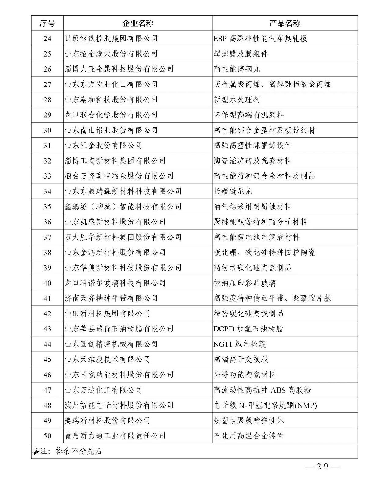 關于公布2025年山東省新材料領軍企業(yè)培育庫入庫名單和50強名單的通知