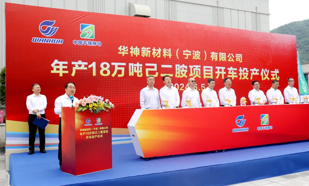 6月5日上午,華神新材料(寧波)有限公司(以下簡稱華神新材料公司)年產(chǎn)18萬噸己二胺項(xiàng)目開車投產(chǎn)儀式在寧波經(jīng)濟(jì)技術(shù)開發(fā)區(qū)舉行。萬華化學(xué)集團(tuán)(以下簡稱萬華化學(xué))黨委書記、董事長廖增太,集團(tuán)黨委書記、董事長李毛出席并致辭。